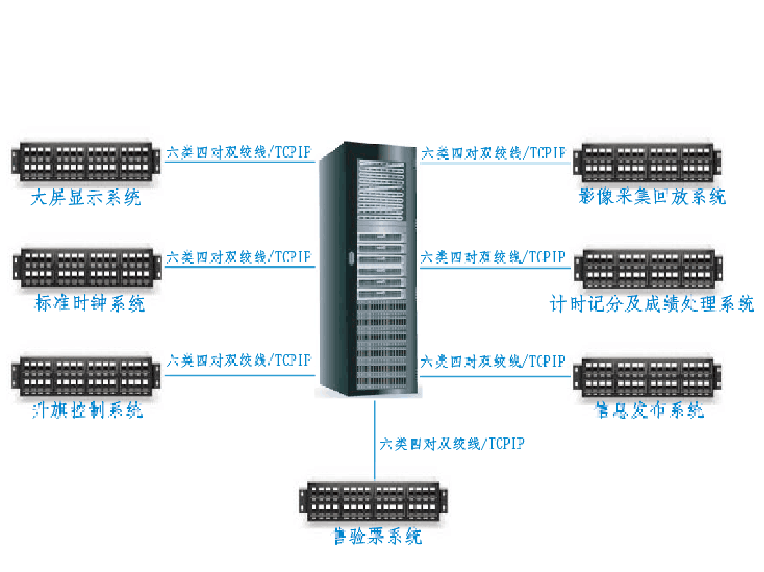 具有多種通信接口和支持多種通信協(xié)議,能方便、靈活地接入不同廠商、不同接口的系統(tǒng)和設(shè)備??梢詫?chǎng)館中具有開(kāi)放接口的系統(tǒng)和設(shè)備直接集成到體育場(chǎng)館比賽設(shè)備集成系統(tǒng)中