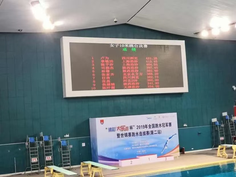 應用于花樣游泳、跳水等水上運動的比賽和訓練計時記分及成績處理。